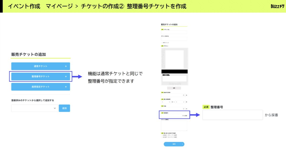 整理番号チケットの作成