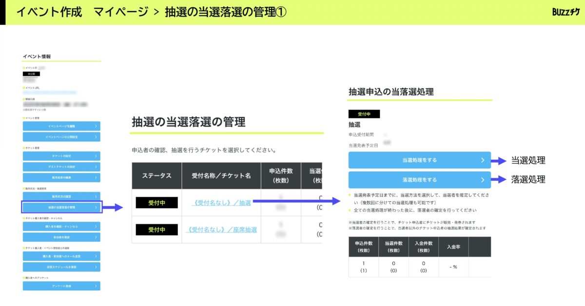 抽選の当選落選の管理