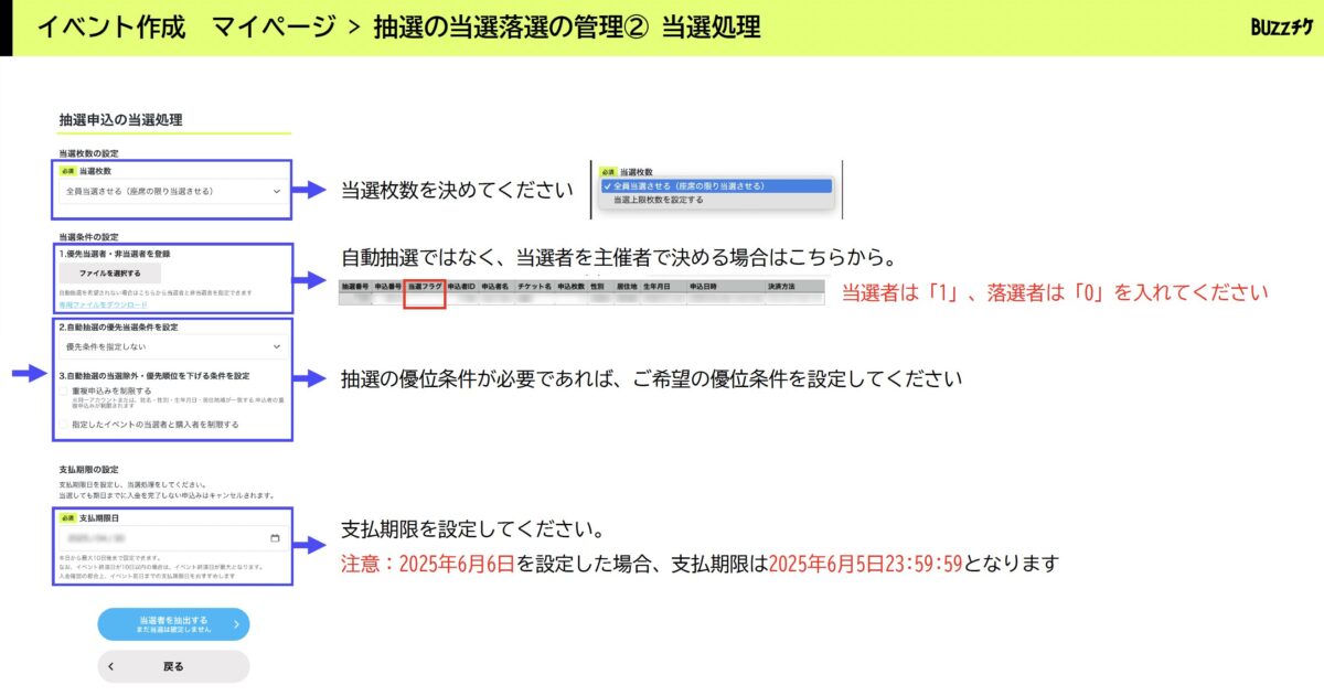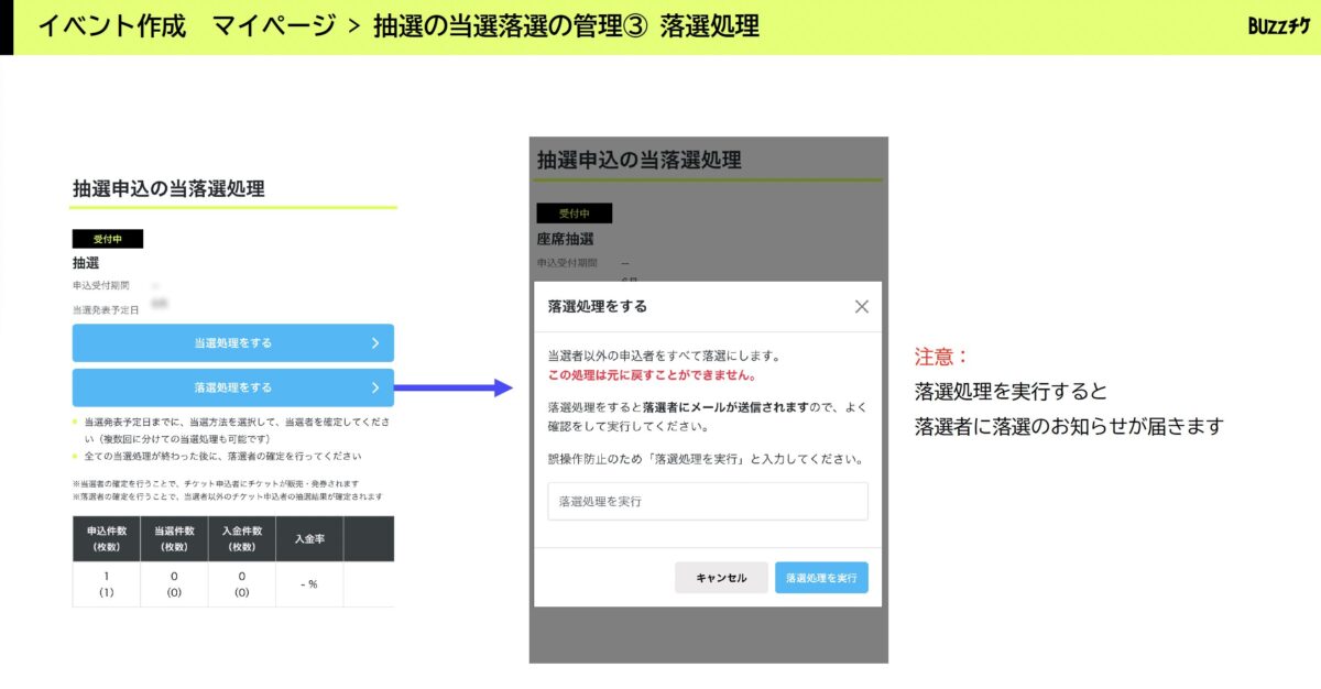 抽選の当選落選の管理②